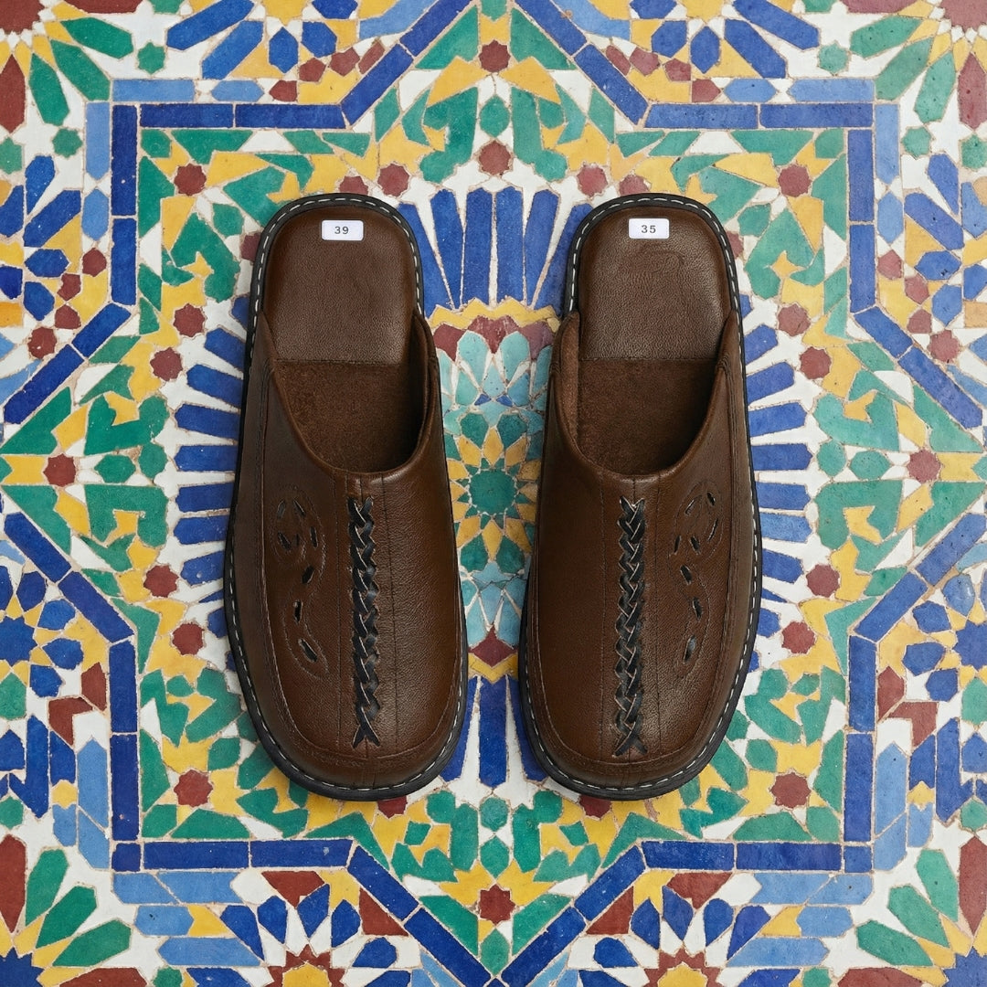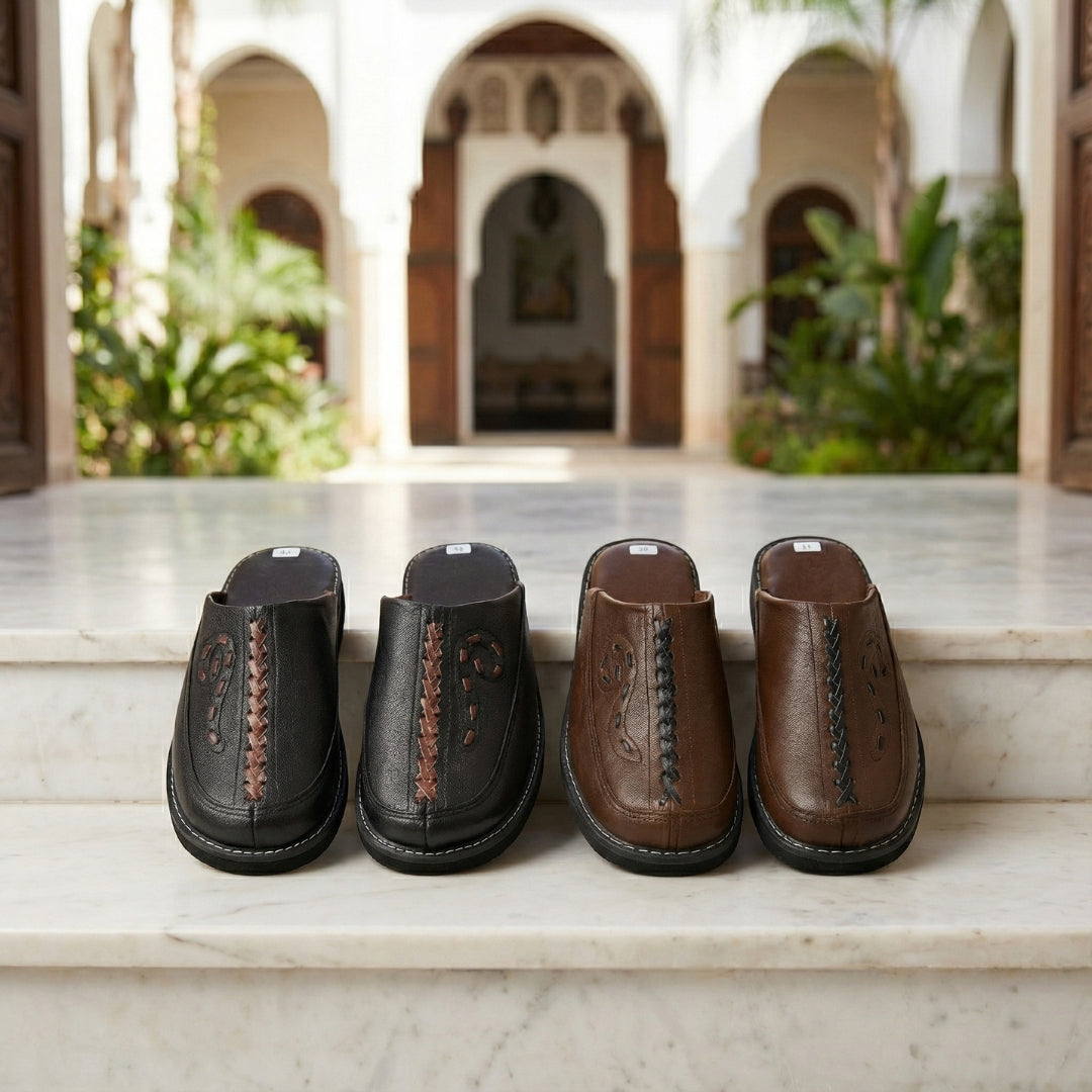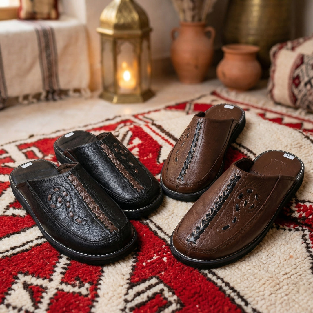 Sourced from the ancient Medina tanneries. We use premium goat leather (Maaez)—organic, breathable, and chosen to mold to your foot and age beautifully over time.