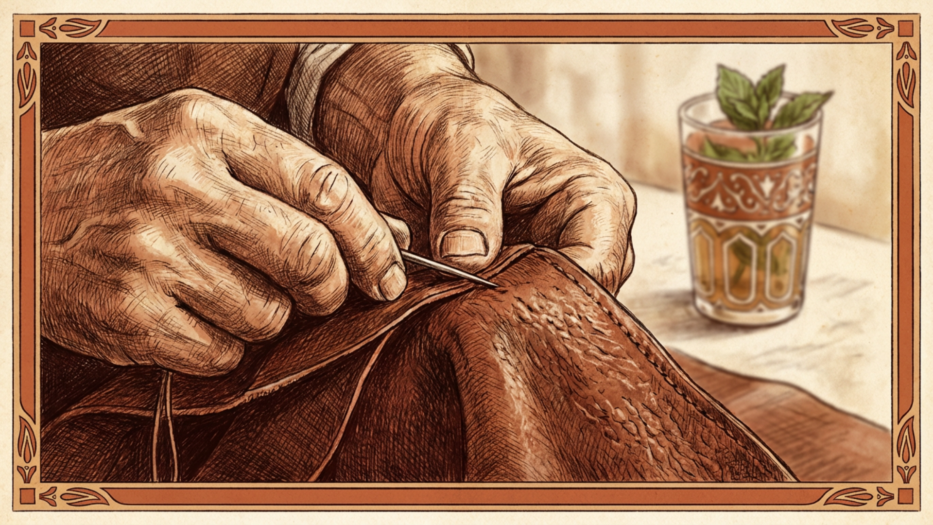 Final assembly is the Maalem’s domain. Every sole is hand-stitched with precision. No machines—just the rhythm of the hammer, patience, and a labor of love.