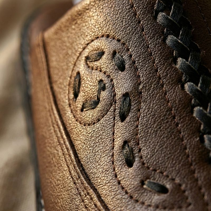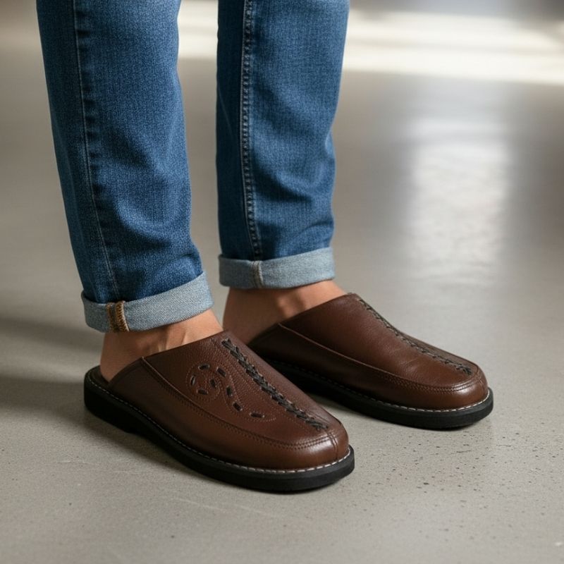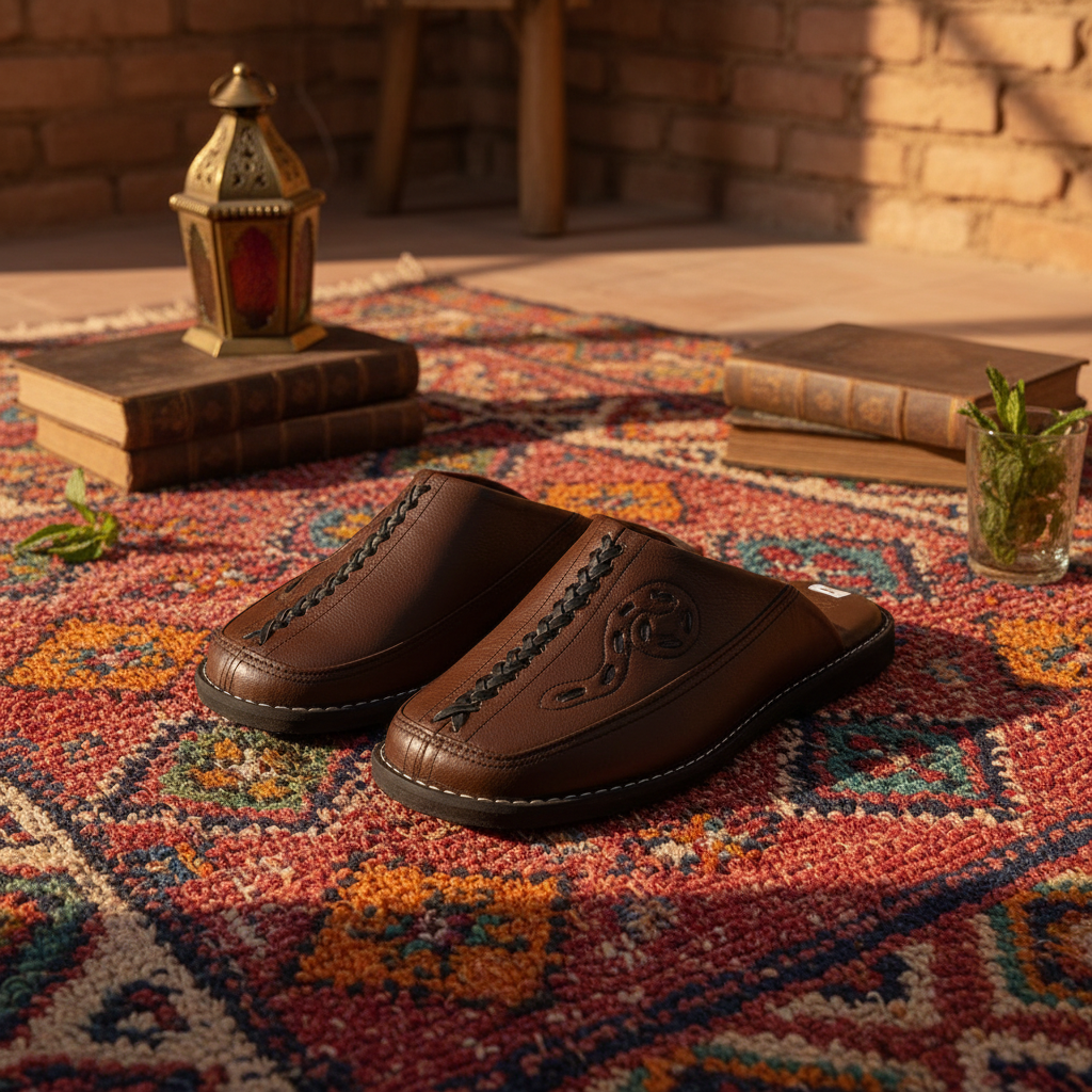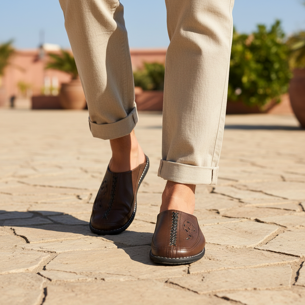 Sourced from the ancient Medina tanneries. We use premium goat leather (Maaez)—organic, breathable, and chosen to mold to your foot and age beautifully over time.